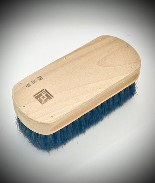 手植毛:馬尾脇毛:桂材:60×135㎜ 毛先は滑らかに摺り下しています。 Hand-transplanted hair:Horsehair (from under the horse's tail): Katsura wood: 60x 135mm. The tips of the bristles are smoothly polished.